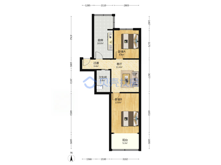 青岛二手房 > 市北区 > 紫荆苑小区(金华路金华支路湖清路大沙路)71.3平高楼层95万南北中厅套二厅