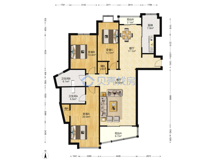 青岛二手房 > 崂山区 > 亚麦山城一期(青大一路38号青岛大学附近浮山前)161.7平中楼层360万1南2北南厅套三双厅双卫