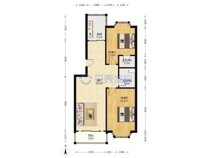青岛二手房 > 市北区 > 福顺家园(鞍山一路23号鞍山二路抚顺路)90.77平低楼层168万南北南厅套二双厅