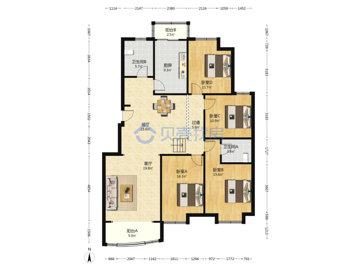 青岛二手房 > 市南区 > 新贵都一期(徐州路闽江路南京路)170.47平加170.47平中楼层998万4南4北南厅8室4厅4卫