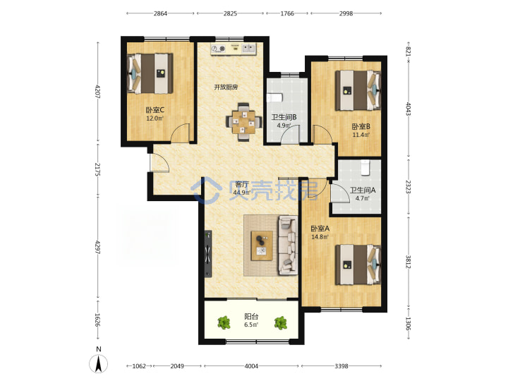 青岛二手房 > 市南区 > 金茂湾二期(四川路滋阳路西藏路)135.38平中楼层340万1南2北南厅套三双厅双卫