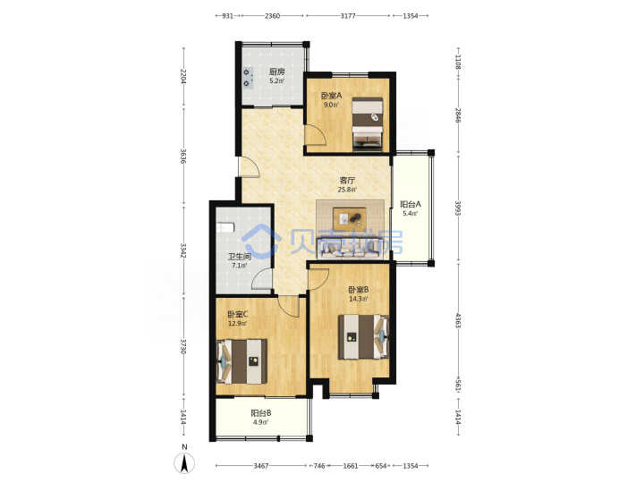 青岛二手房 > 市北区 > 福岭嘉苑E区(合肥路278号同德路宁安路)99.91平中楼层208万双南一北东厅套三双厅