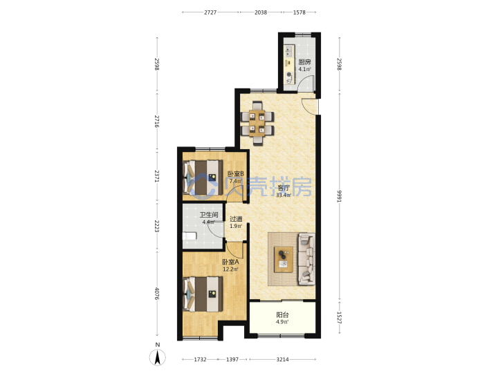 青岛二手房 > 市北区 > 中海临安府(杭州路28号宣化路)93.99平中楼层175万南北南厅套二双厅