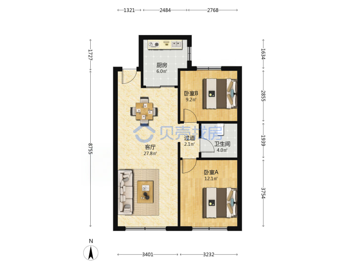 青岛二手房 > 市北区 > 保利叶公馆(合肥路富饶路哈尔滨路宁安路)86.28平高楼层210万南北南厅套二厅