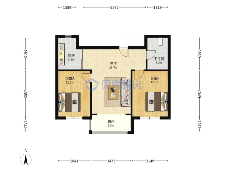 青岛二手房 > 市北区 > 海情御园(大沙路大沙支路开平路)89.55平高楼层129万双南南厅套二厅