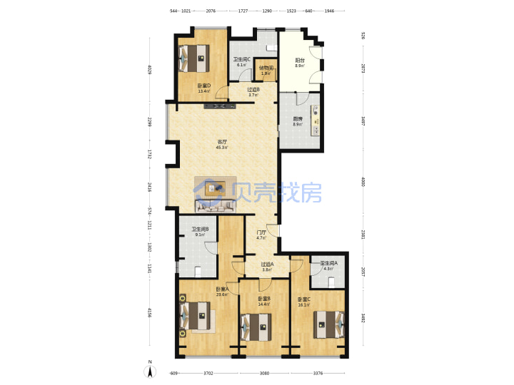 青岛二手房 > 市南区 > 华润中心悦府华润悦府(万象城山东路江西路闽江路香港中路)238.78平高楼层1300万3南1北西厅4室2厅3卫