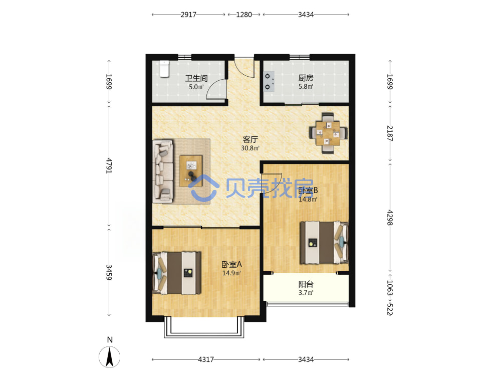 青岛二手房 > 市北区 > 嘉合新兴(敦化路山东路西吴路)106.73平低楼层97万双南套二厅
