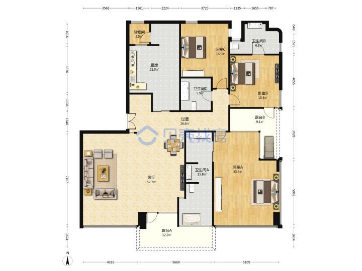 青岛二手房 > 市南区 > 柏丽澜庭(澳门路增城路越秀路)264.92平高楼层2260万1南2北南厅套三双厅三卫