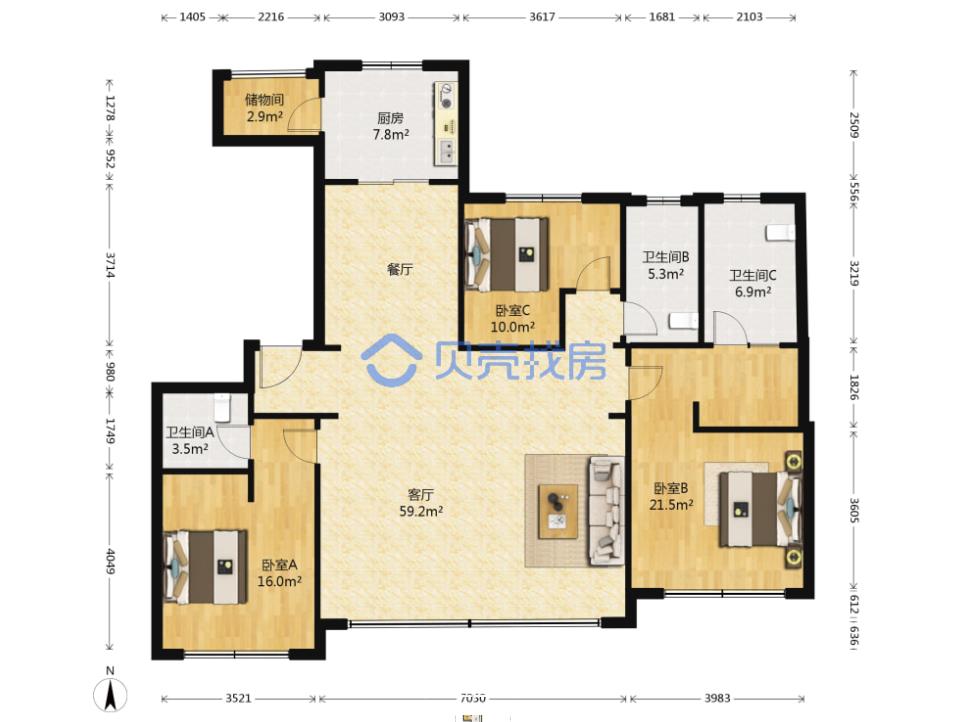 保利漫月山 3室2厅 南 北