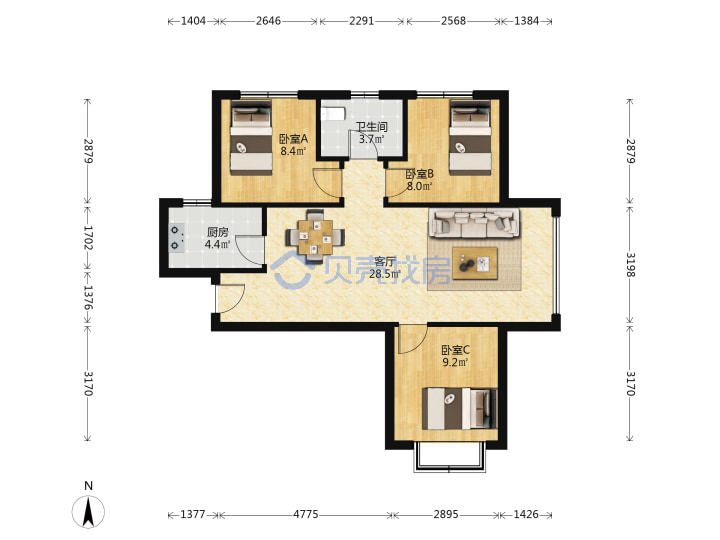- 房屋设施:煤气,暖气,物业管理,电梯,独立厨房,独立卫生间