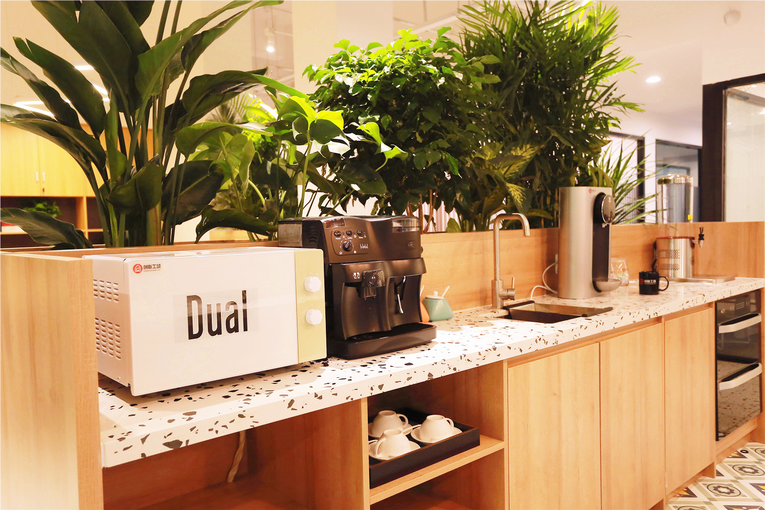 2.高档装修,时尚品质办公,咖啡吧,小花园,提高员工办公幸福感