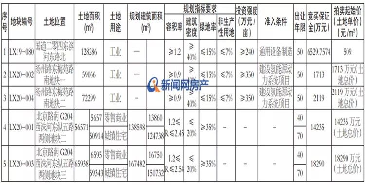 编号LX20-004(3号地块)为工业用地,土地面积72299㎡,容积率≥0.9准入条件为建设氢能源动力系统项目,拍卖起始价2119万元(土地总价)。