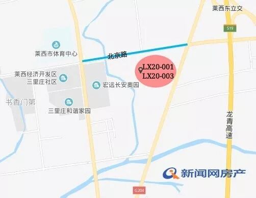 根据土地出让公告显示,2宗商住地块位于北京路南G204西洙河东纵五路地块。编号LX20-001地块(4号地块)占地总面积56571㎡(零售商业5657㎡,城镇住宅50914㎡),规划建筑面积138598㎡(零售商业13860㎡,城镇住宅124738㎡),拍卖起始价为14235万元(土地总价),约1.42亿。