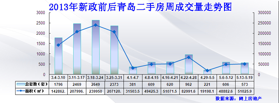 2013年新政前后青岛二手房周成交量走势图