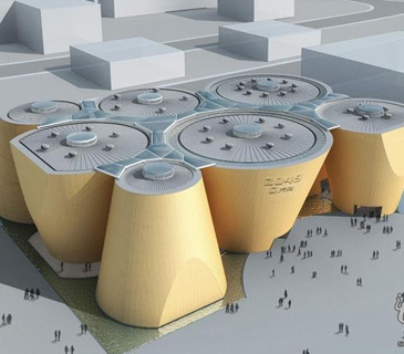 万科馆应用了风压、热压两套自然通风系统,从而尽可能减少空调使用的时间。在大多数筒状建筑的屋面均安装了数量不等的无动力自然通风器(涡轮通风器),此通风器在温和季节靠自然风无动力运行,利用自然风力抽出室内空气。通风器在使用空调时通过电动风阀制动。 |