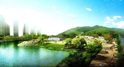 项目紧邻的北岭山森林公园是青岛市内规模较大的几座森林公园之一,公园内植被郁郁葱葱,松柏成林,草地成片,众多观赏草木相映成趣,并配有6000平方米的人工湖泊、亭子,供游人在此垂钓休闲。